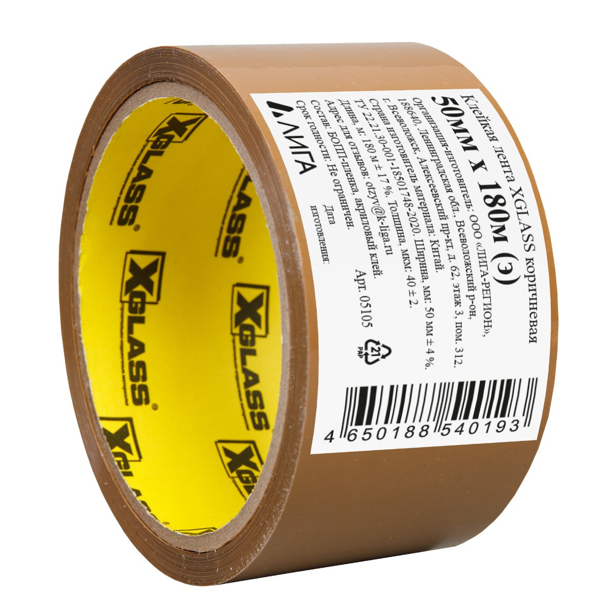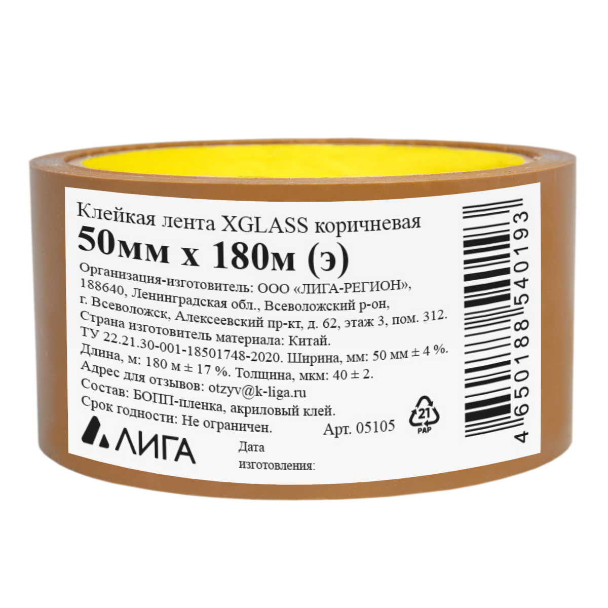 Лента упаковочная клейкая Xglass 05105 коричневая 50 мм 180 м (э)