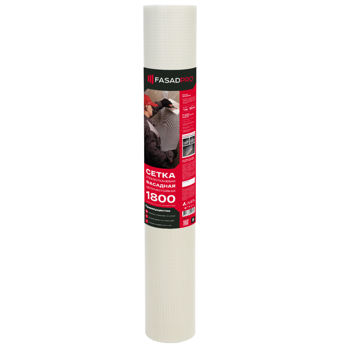Сетка стеклотканевая фасадная 1800 FasadPro рядовая щелочестойкая 1 м х 50 м